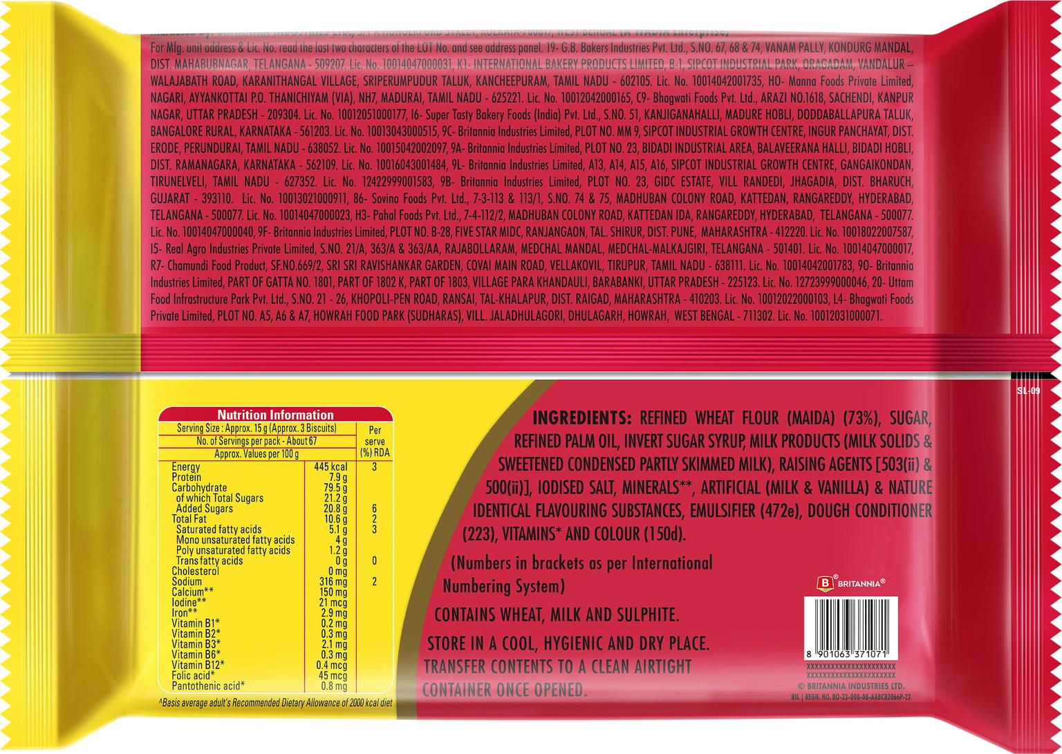Britannia Marie Gold biscuits are also widely used in households for making desserts such as biscuit cakes, puddings and other quick recipes. With a long shelf life and convenient packaging, the 1 kg family pack is perfect for sharing with family members and enjoying anytime at home, office or while travelling.