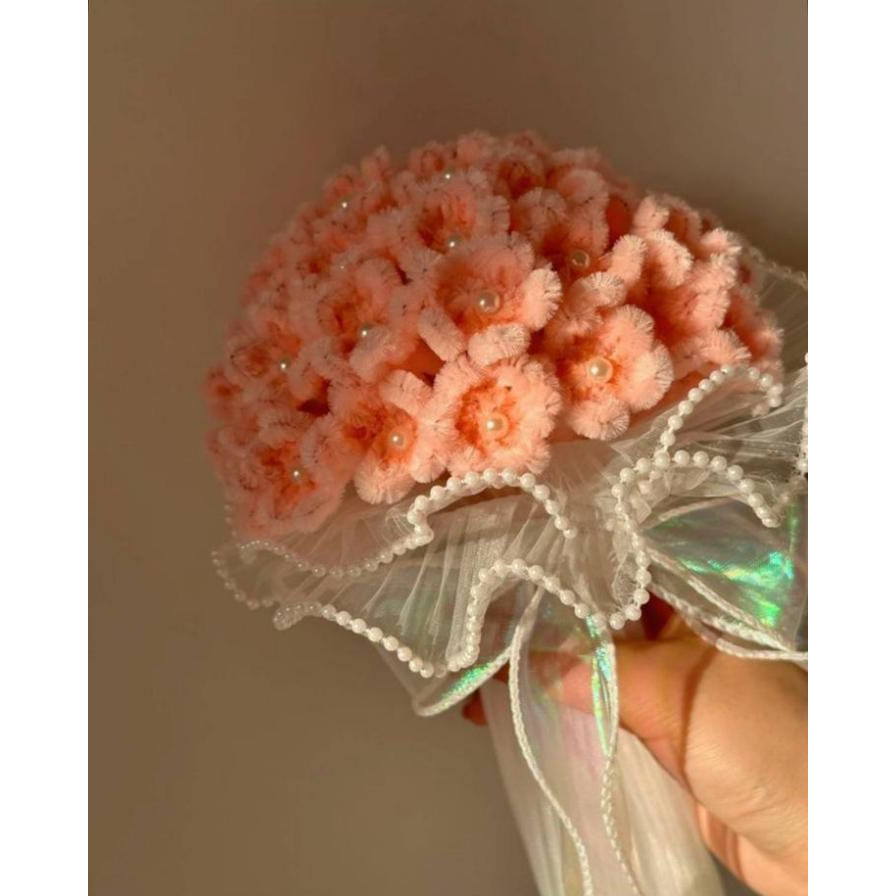 Add a touch of charm and creativity to your gifting with this Handmade Pipe Cleaners Lily Bouquet (Small Flowers). Carefully crafted using soft pipe cleaners, this bouquet features delicate lily-style flowers enhanced with elegant pearl detailing and wrapped in decorative net fabric.
