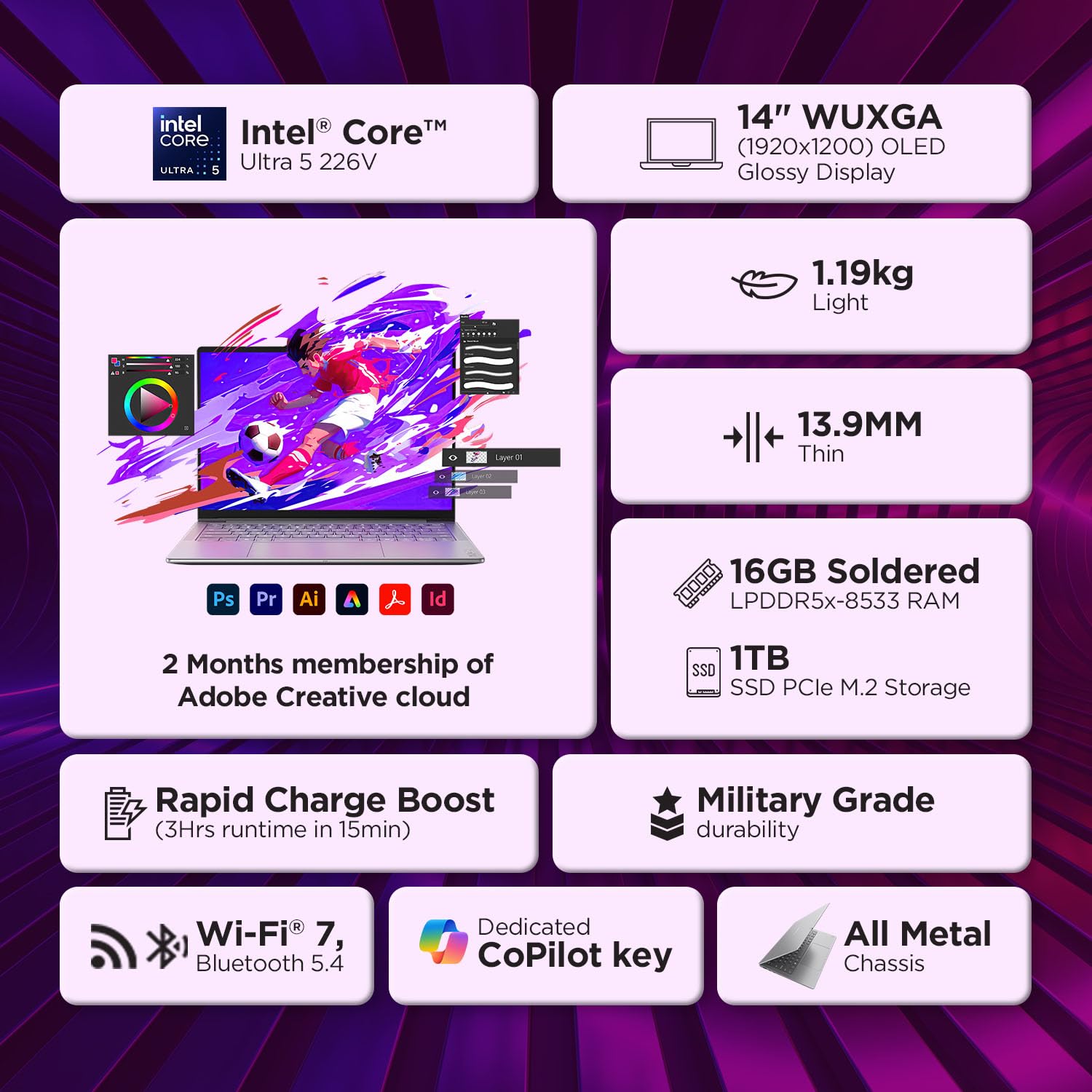 ✔ 14″ WUXGA OLED Display – Vibrant colors, deep contrast, and immersive visuals.