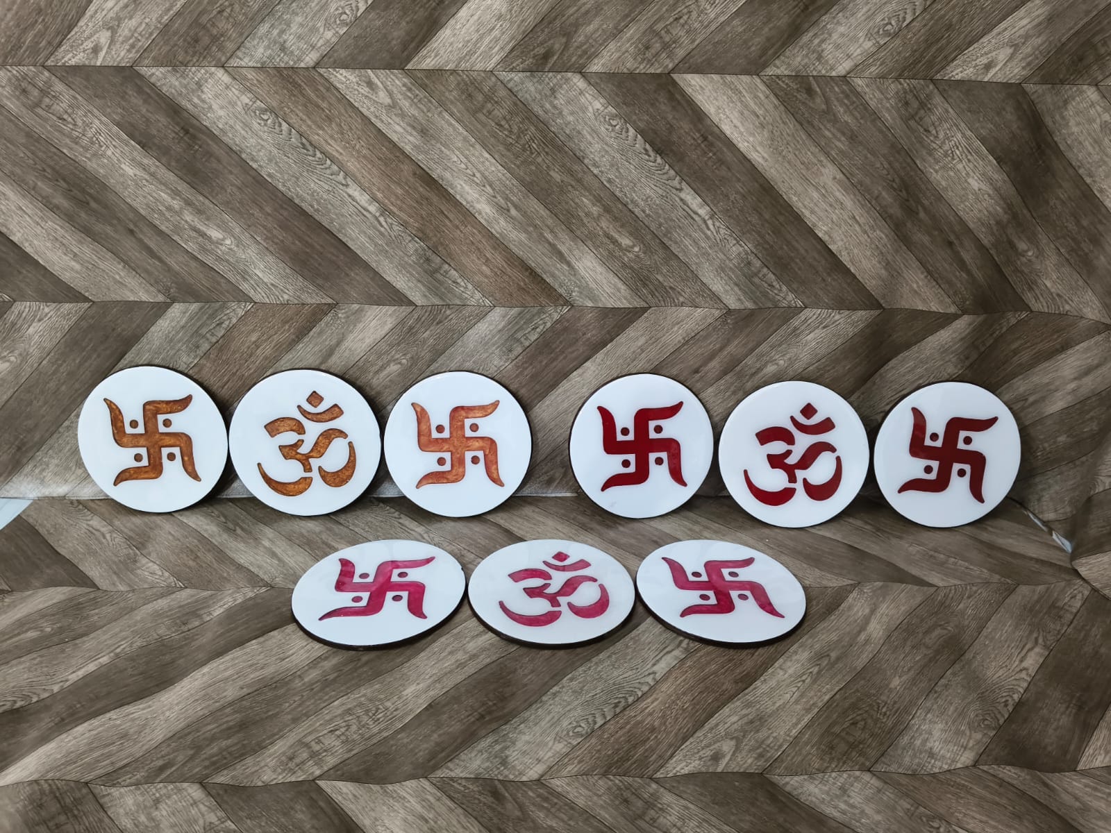 Bring divine energy and elegance to your pooja space with this Round Swastik & Om Design Pooja Chowki / Puja Base Plate. Crafted with sacred Hindu symbols, this decorative chowki is perfect for placing idols, diya, kalash, incense stands and pooja essentials.