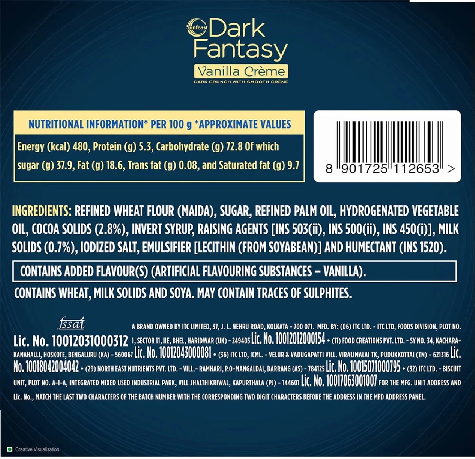 Product Name Dark Fantasy Vanilla Creme Biscuit