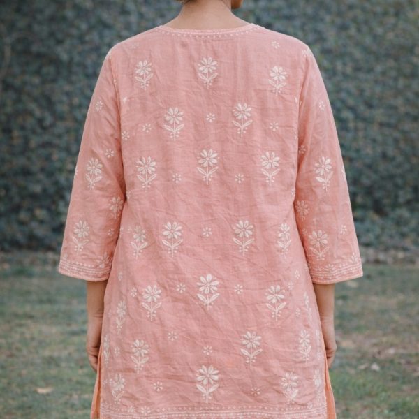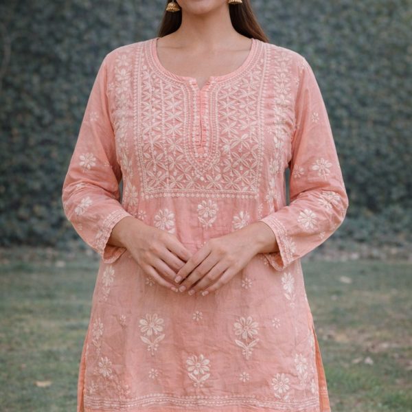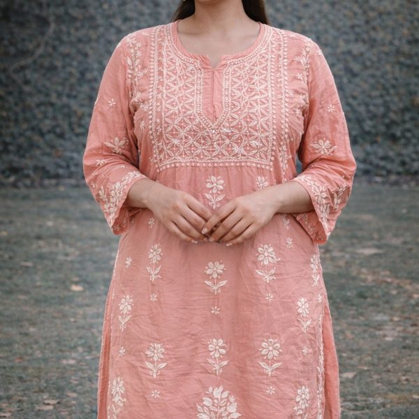 Peach Pink Chikankari Masline Top