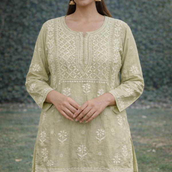 Light Green Chikankari Masline Top