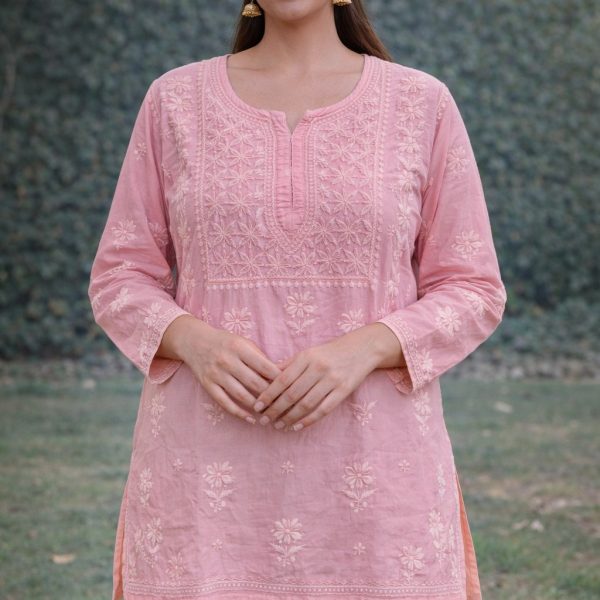 Tale Pink Chikankari Masline Top