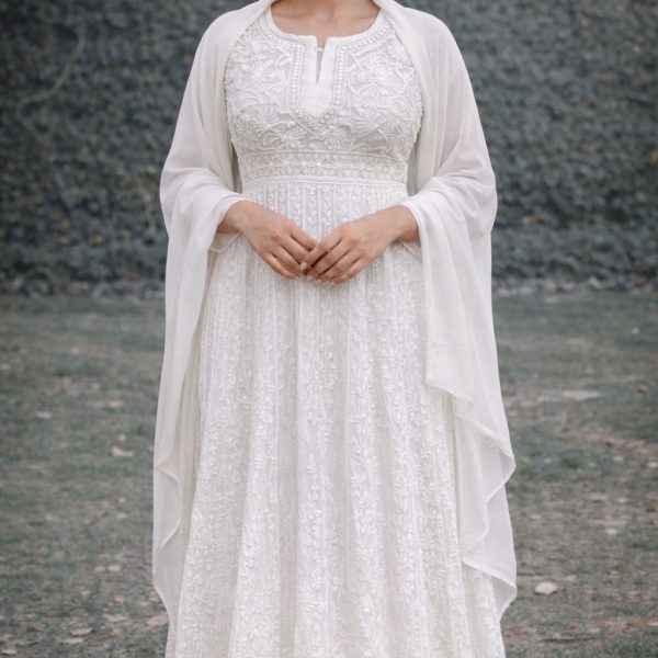 White Chikankari Anarkali Suit with Dupatta