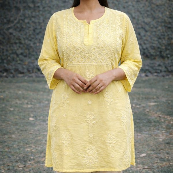 Dark Yellow Chikankari Masline Top